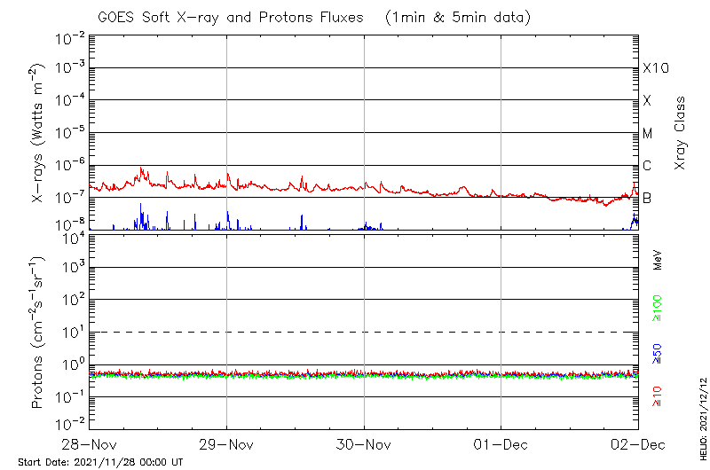 This page provides light-curves generated from GOES soft X-ray and Particle data for the date indicated at the top and the preceding three days.