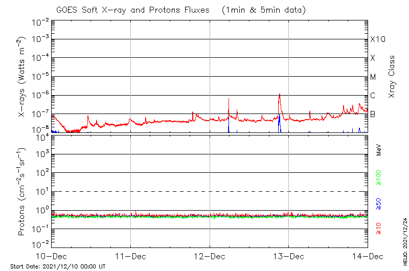 This page provides light-curves generated from GOES soft X-ray and Particle data for the date indicated at the top and the preceding three days.