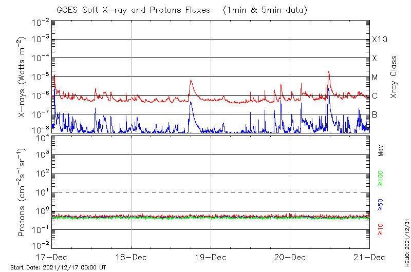 This page provides light-curves generated from GOES soft X-ray and Particle data for the date indicated at the top and the preceding three days.