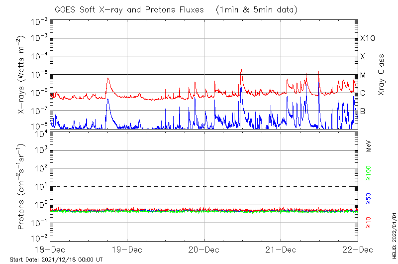 This page provides light-curves generated from GOES soft X-ray and Particle data for the date indicated at the top and the preceding three days.