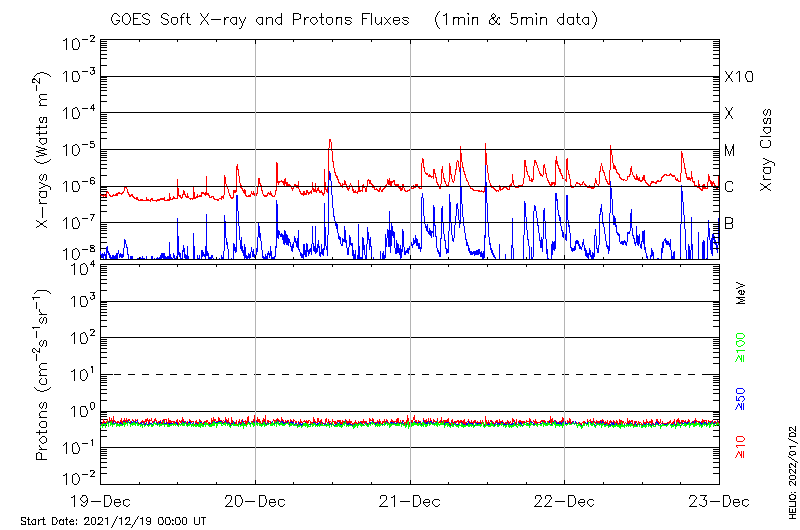 This page provides light-curves generated from GOES soft X-ray and Particle data for the date indicated at the top and the preceding three days.