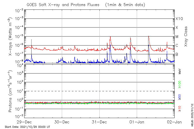This page provides light-curves generated from GOES soft X-ray and Particle data for the date indicated at the top and the preceding three days.