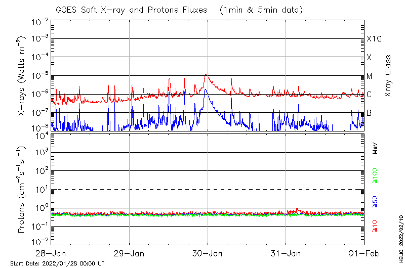 This page provides light-curves generated from GOES soft X-ray and Particle data for the date indicated at the top and the preceding three days.