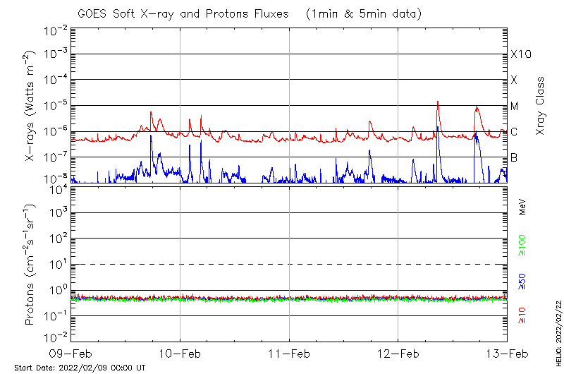 This page provides light-curves generated from GOES soft X-ray and Particle data for the date indicated at the top and the preceding three days.