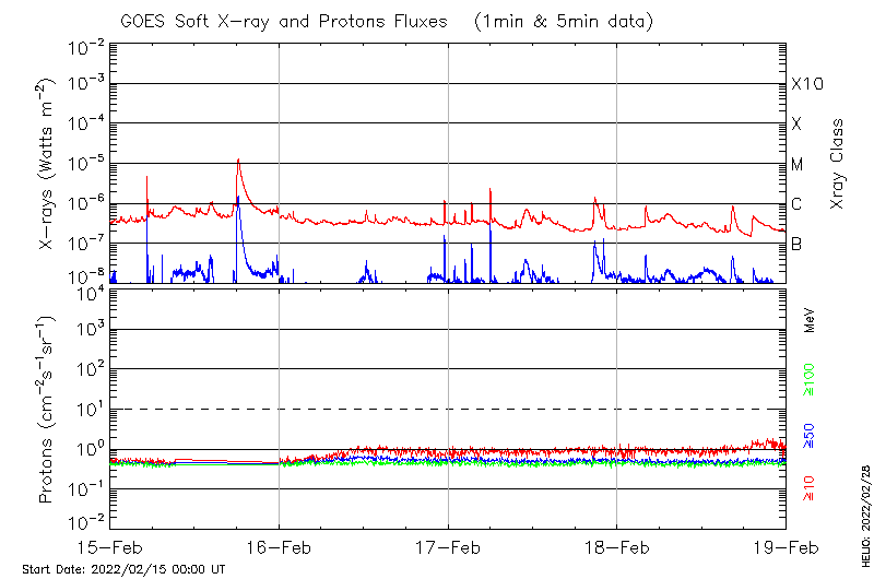This page provides light-curves generated from GOES soft X-ray and Particle data for the date indicated at the top and the preceding three days.