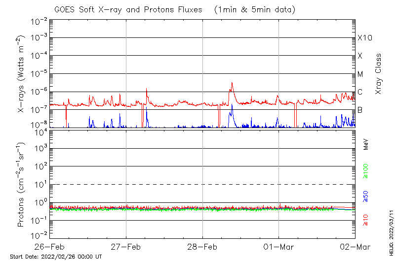 This page provides light-curves generated from GOES soft X-ray and Particle data for the date indicated at the top and the preceding three days.