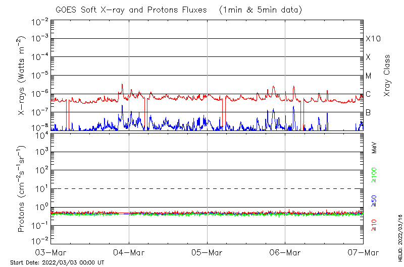 This page provides light-curves generated from GOES soft X-ray and Particle data for the date indicated at the top and the preceding three days.