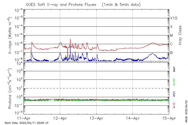 This page provides light-curves generated from GOES soft X-ray and Particle data for the date indicated at the top and the preceding three days.