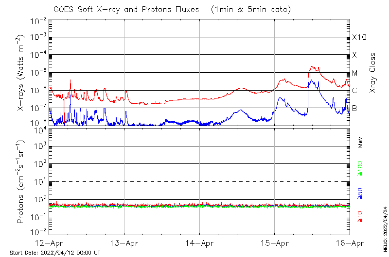 This page provides light-curves generated from GOES soft X-ray and Particle data for the date indicated at the top and the preceding three days.