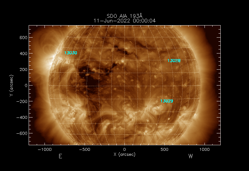 The image used is normally SDO AIA 193Å but PROBA2 SWAP 194Å images are used if no SDO data are available.