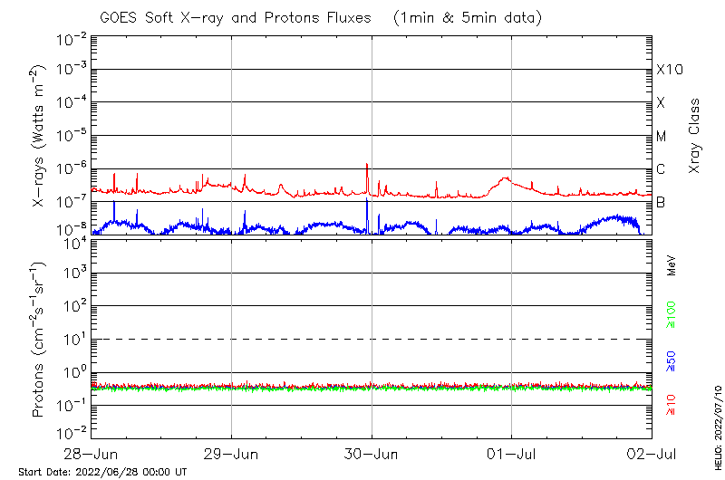This page provides light-curves generated from GOES soft X-ray and Particle data for the date indicated at the top and the preceding three days.