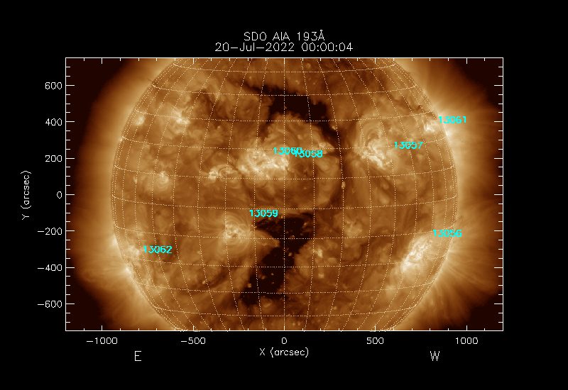 The 5 digit numbers in turquoise designate Active Regions;