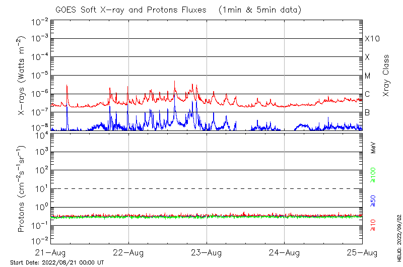 This page provides light-curves generated from GOES soft X-ray and Particle data for the date indicated at the top and the preceding three days.
