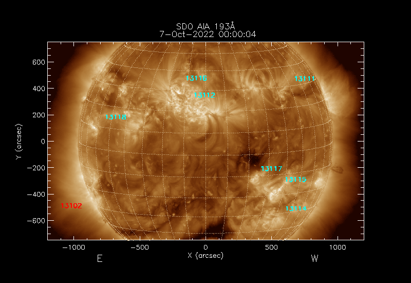 The 5 digit numbers in turquoise designate Active Regions;