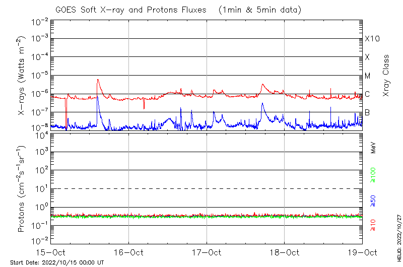 This page provides light-curves generated from GOES soft X-ray and Particle data for the date indicated at the top and the preceding three days.