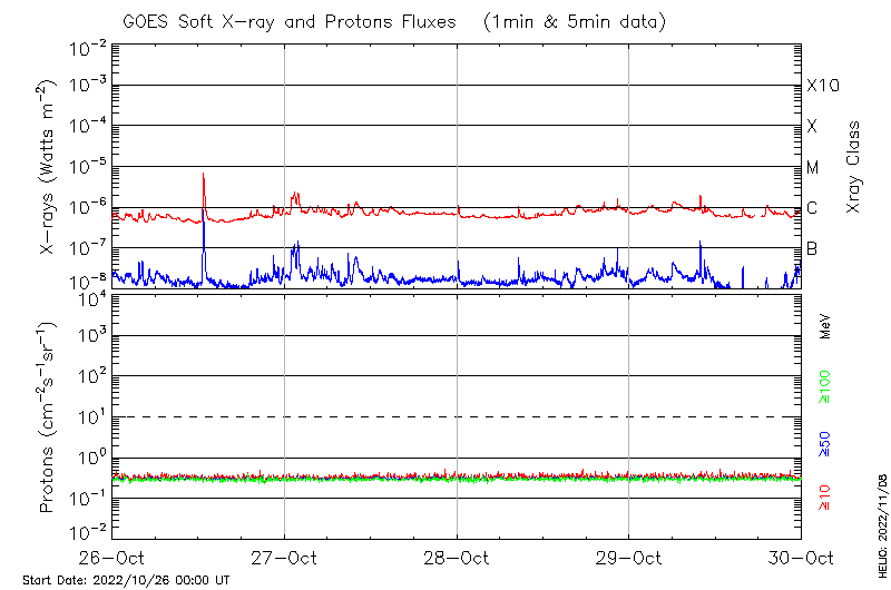 This page provides light-curves generated from GOES soft X-ray and Particle data for the date indicated at the top and the preceding three days.