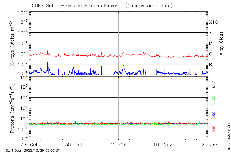 This page provides light-curves generated from GOES soft X-ray and Particle data for the date indicated at the top and the preceding three days.