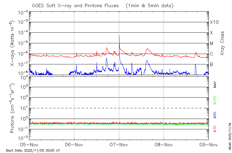 This page provides light-curves generated from GOES soft X-ray and Particle data for the date indicated at the top and the preceding three days.