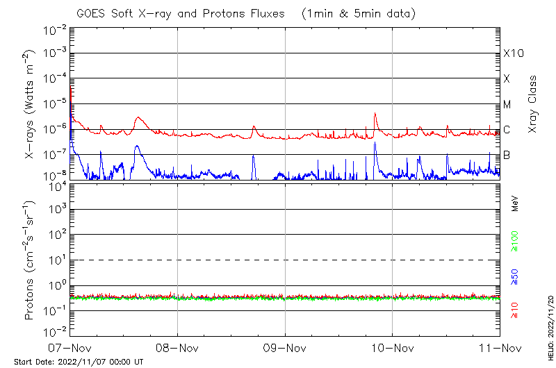 This page provides light-curves generated from GOES soft X-ray and Particle data for the date indicated at the top and the preceding three days.
