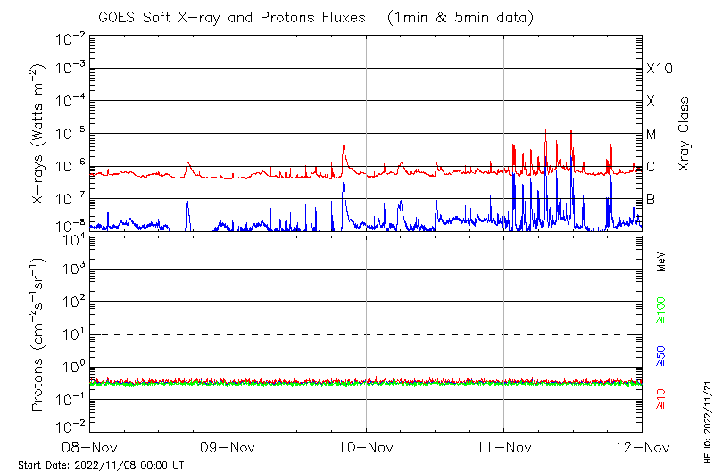 This page provides light-curves generated from GOES soft X-ray and Particle data for the date indicated at the top and the preceding three days.