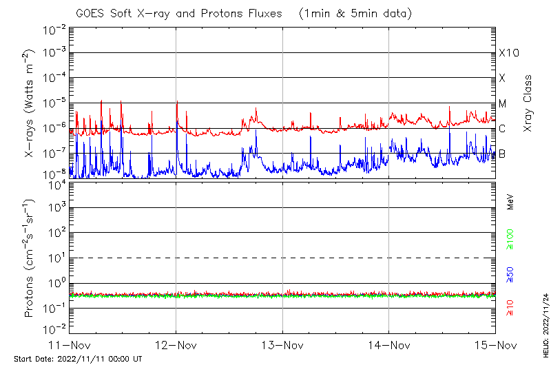 This page provides light-curves generated from GOES soft X-ray and Particle data for the date indicated at the top and the preceding three days.