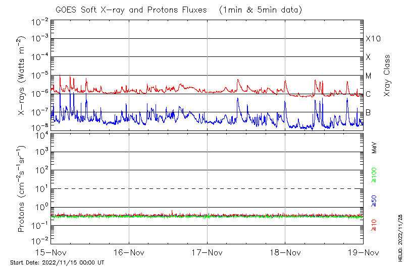 This page provides light-curves generated from GOES soft X-ray and Particle data for the date indicated at the top and the preceding three days.