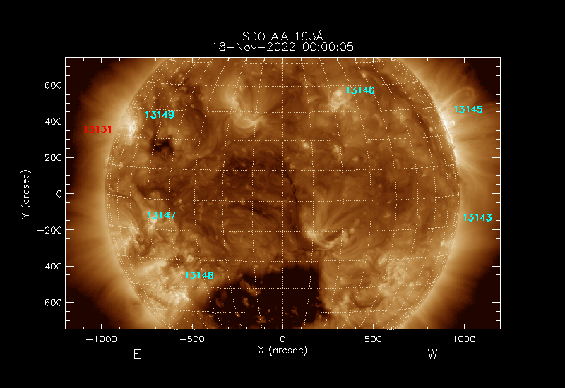 The numbers in turquoise designate Active Regions;