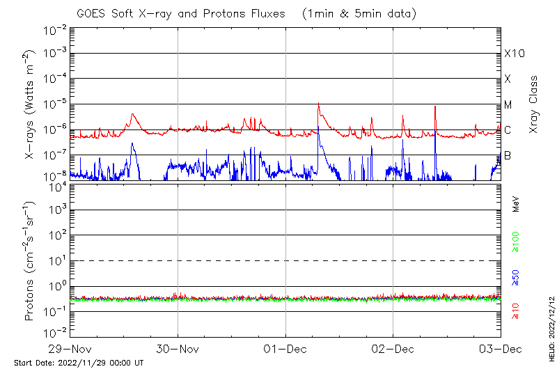 This page provides light-curves generated from GOES soft X-ray and Particle data for the date indicated at the top and the preceding three days.