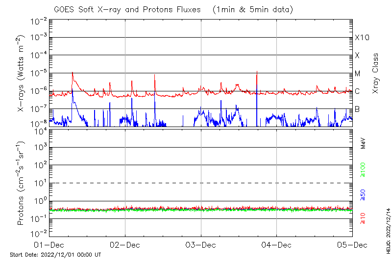 This page provides light-curves generated from GOES soft X-ray and Particle data for the date indicated at the top and the preceding three days.