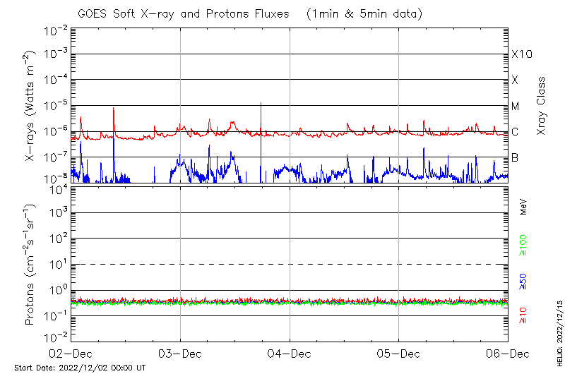 This page provides light-curves generated from GOES soft X-ray and Particle data for the date indicated at the top and the preceding three days.