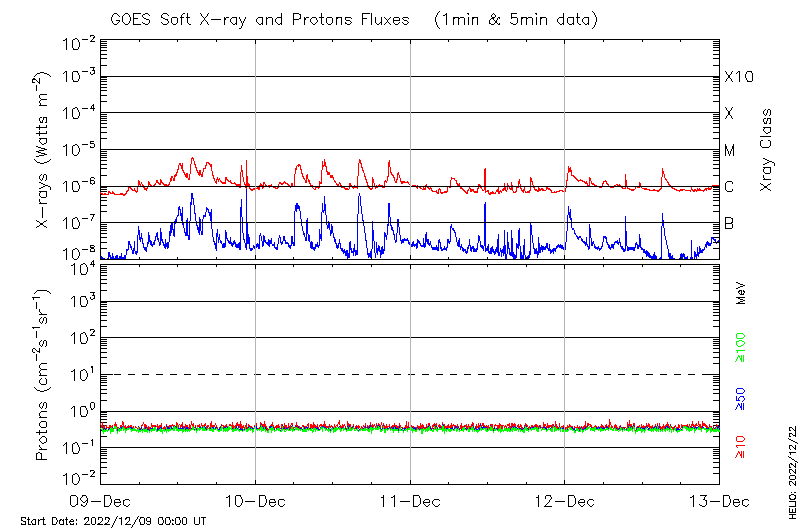 This page provides light-curves generated from GOES soft X-ray and Particle data for the date indicated at the top and the preceding three days.