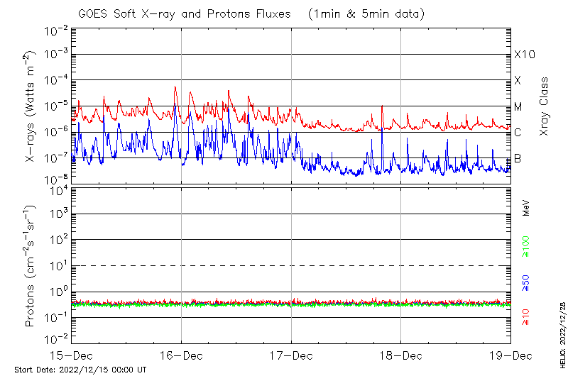 This page provides light-curves generated from GOES soft X-ray and Particle data for the date indicated at the top and the preceding three days.