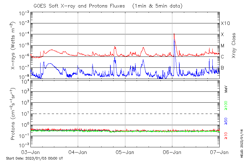 This page provides light-curves generated from GOES soft X-ray and Particle data for the date indicated at the top and the preceding three days.