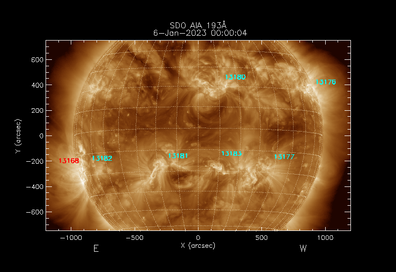 The numbers in turquoise designate Active Regions;