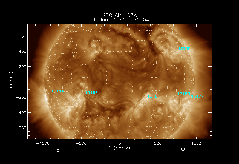 The 5 digit numbers in turquoise designate Active Regions;