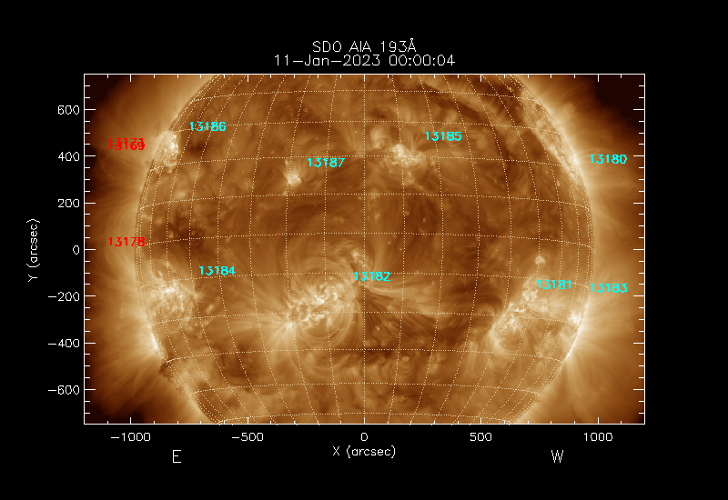 The numbers in turquoise designate Active Regions;