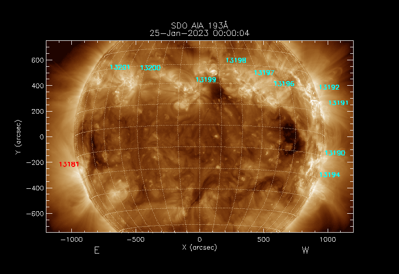 The numbers in turquoise designate Active Regions;