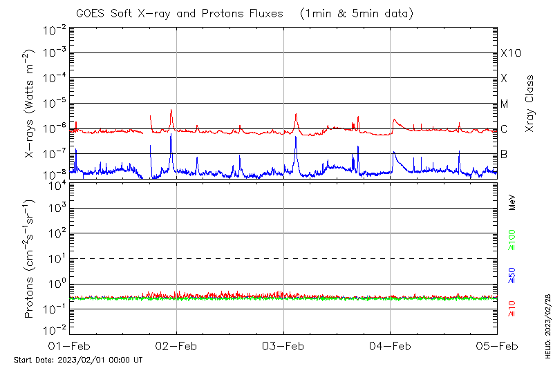This page provides light-curves generated from GOES soft X-ray and Particle data for the date indicated at the top and the preceding three days.