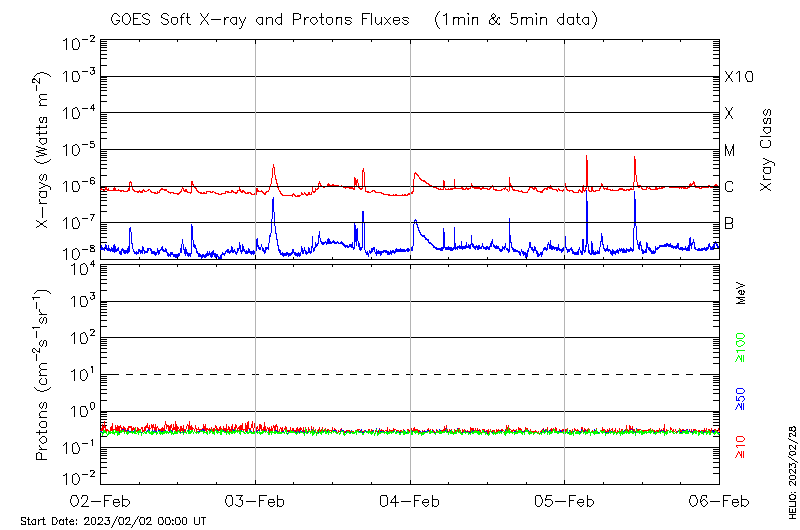 This page provides light-curves generated from GOES soft X-ray and Particle data for the date indicated at the top and the preceding three days.