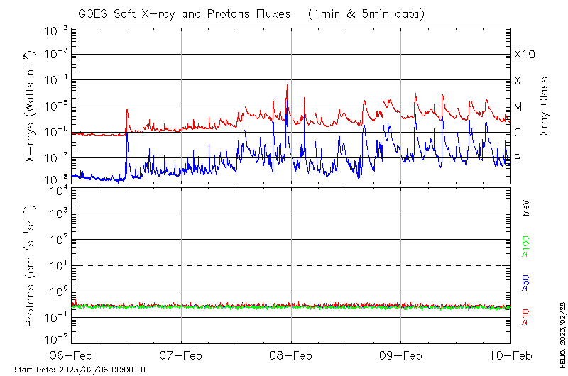This page provides light-curves generated from GOES soft X-ray and Particle data for the date indicated at the top and the preceding three days.