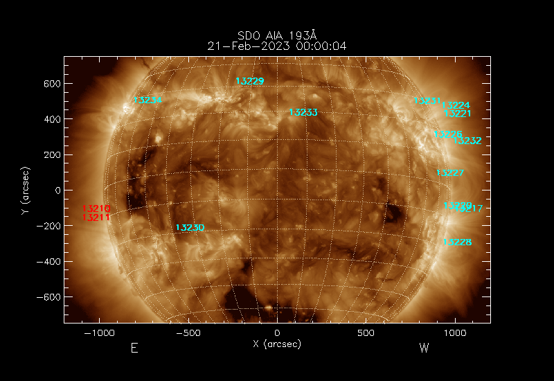 The numbers in turquoise designate Active Regions;