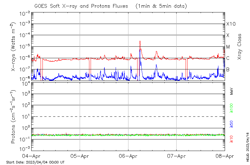 This page provides light-curves generated from GOES soft X-ray and Particle data for the date indicated at the top and the preceding three days.