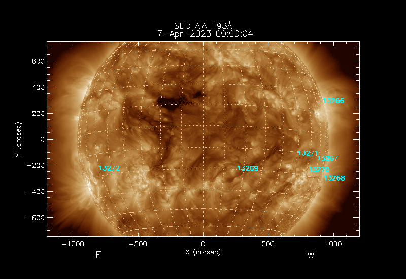 The 5 digit numbers in turquoise designate Active Regions;