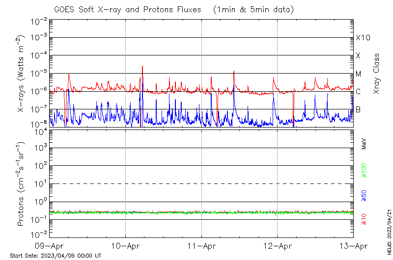 This page provides light-curves generated from GOES soft X-ray and Particle data for the date indicated at the top and the preceding three days.