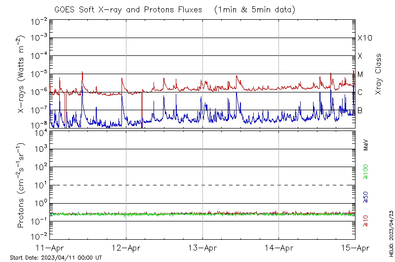 This page provides light-curves generated from GOES soft X-ray and Particle data for the date indicated at the top and the preceding three days.
