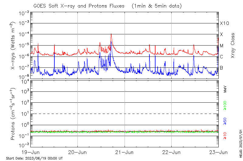 This page provides light-curves generated from GOES soft X-ray and Particle data for the date indicated at the top and the preceding three days.