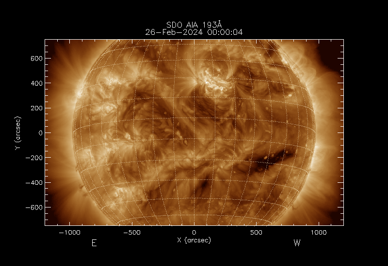 The image used is normally SDO AIA 193Å but PROBA2 SWAP 194Å images are used if no SDO data are available.