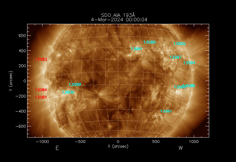 Active Region locations are from NOAA/SWPC.