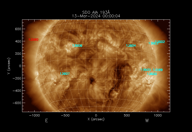 The 5 digit numbers in turquoise designate Active Regions;