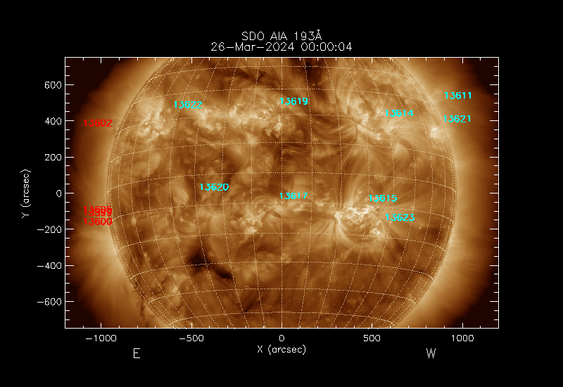 Note that some types of solar emission are more likely to be geo-effective if they originate from the western half to the disk